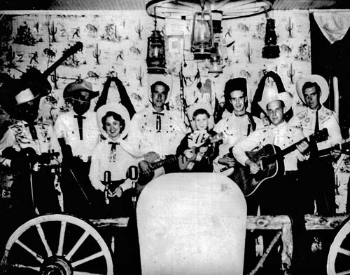 Before the old tavern burnt down Mr. Stovall kept it open though the week. After he wasn't able, the business was just open on the weekends. The Stovall couples took turns working on the weekends. One husband and wife, Ches and Verna would work one weekend and Buzz and Hazel Mueller would work the next. Since Delmer and Delbert played in the band, their wives, Norma Jean and Marcedes hired Helen Gilmore to help them work their weekend when it came about. The waitresses were the Stovalls wives who were not tending bar. All this was in addition to their regular jobs. The entire Stovall family lived on the premises.