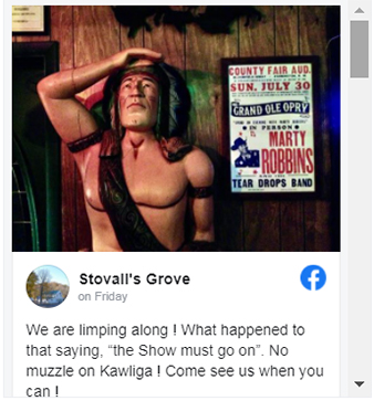 Stovall’s flower laden cowboy boots now are on display next to the Stovall’s Grove stage. The Missouri Valley Boys band continues to play traditional country music every weekend, while couples clad in Stetsons two-step effortlessly across the smooth dance floor.