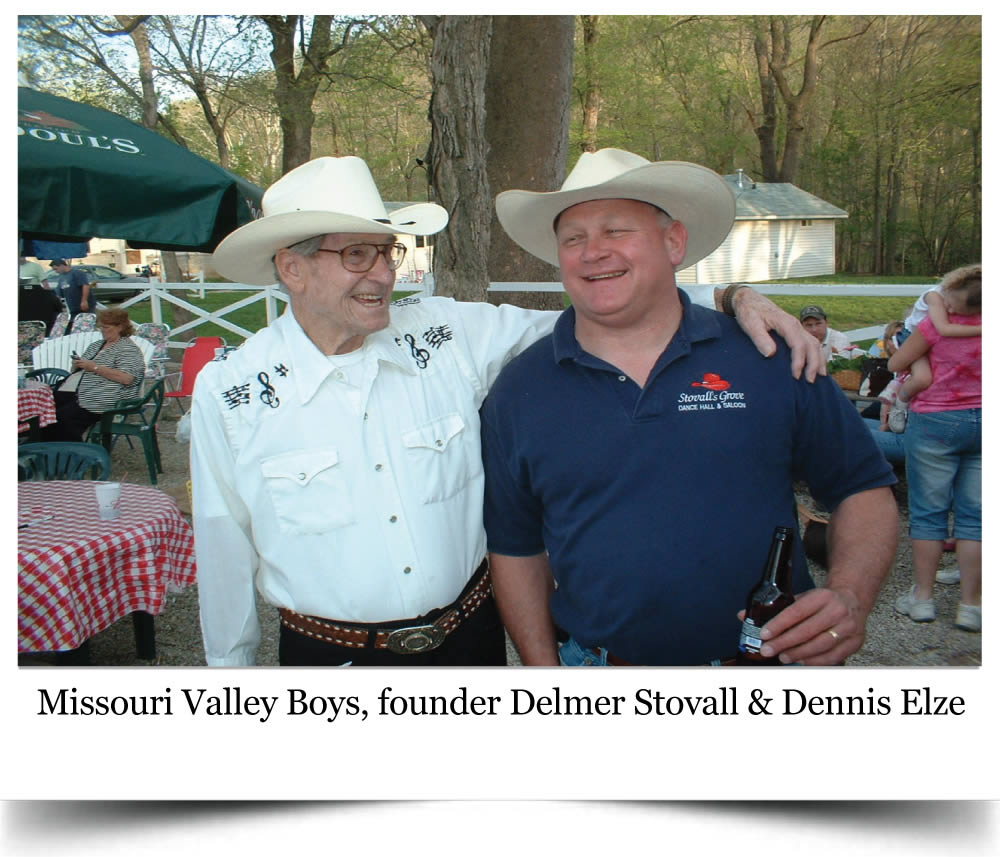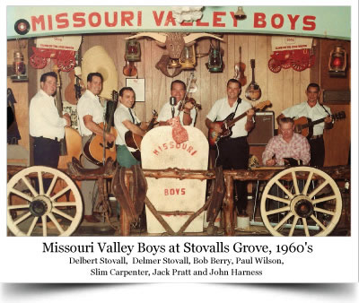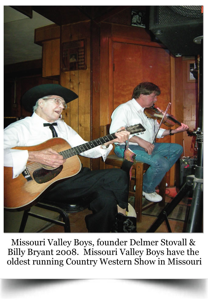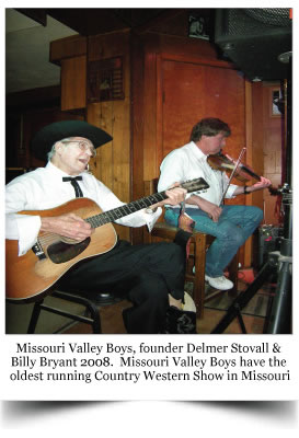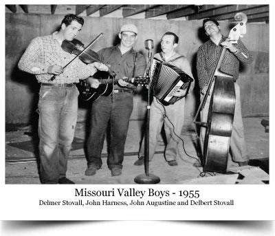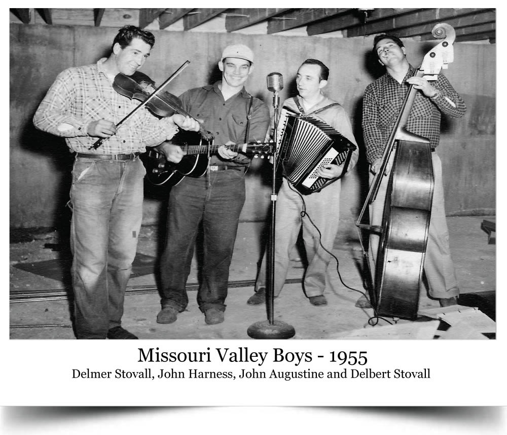 It was around 1950 that Stovall, his brother and a few friends decided to combine their musical talents and form the Missouri Valley Boys. Of the original band comprised of the Stovall's, Johnny Augustine, Harvey Walker, John Harness, Cliff Roark, Billy Bryant and Jack Bryant, only Delmer Stovall still takes to the stage with his guitar.